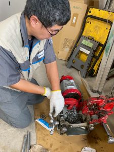 当社には、現場経験が豊富なベテラン設備士が在籍。実技試験の要である「ねじ切り」や配管の芯出し、シール材の扱い、トルク管理まで、作業の勘所をマンツーマンで指導できる環境があります。工具の選び方から姿勢・手の当て方、音や手応えの違いまで、視覚・聴覚・触覚を総動員して身につける反復練習を重視しています。